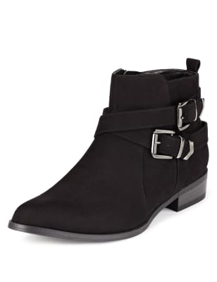 Stylizacja nie była by kompletna bez modnego obuwia. Postawiła na czarne, zamszowe botki z dwoma krzyżującymi się na przedzie paskami i klamrami z boku. Buty te mają delikatny obcas i są bardzo uniwersalne. Przy innej okazji Gigi dobrała je do szarej obcisłej sukienki.